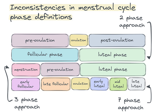 It means the luteal phase of one study may not match the luteal phase of another study. And what may be referred to as “menses” in one paper may simply be labelled “the follicular phase” in another.
